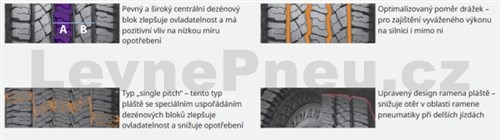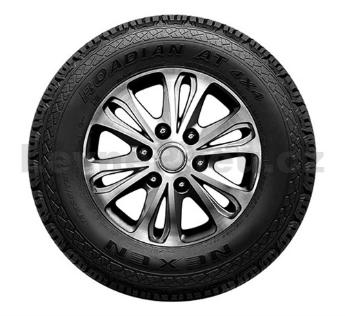 Popis produktu: Nexen Roadian AT 4X4 je prémiová celoroční pneumatika určená pro terénní vozidla, SUV a lehké nákladní vozy. Tato pneumatika nabízí vynikající jízdní vlastnosti na různých površích, včetně silnic a terénu, díky optimalizovanému poměru drážek, který zajišťuje vyvážený výkon na silnici i mimo ni. Široké a pevné středové bloky zlepšují ovladatelnost a brzdný výkon, zatímco zvýšená tuhost ramenních bloků přispívá k lepší stabilitě při zatáčení. Design s jedním typem rozteče zabraňuje nepravidelnému opotřebení a prodlužuje životnost pneumatiky. Zvýšený profil na vnější straně ramene chrání pneumatiku před nadměrným opotřebením při intenzivním používání v terénu.